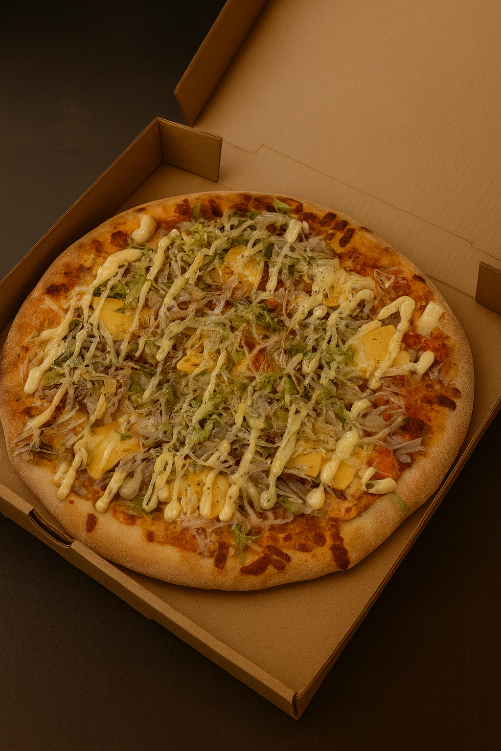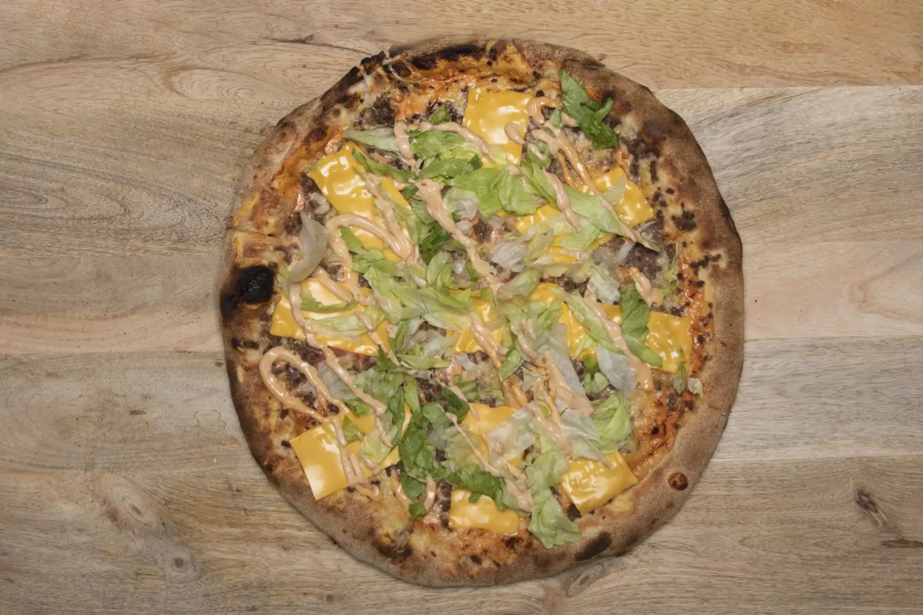 Crème,sauce,viande hachée tomates fraîches, oignons cheddar,mozzarella salade,sauce burger,origan